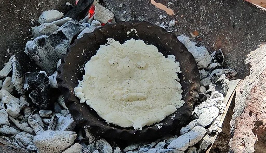 Taller de Cerámica Mbeju Tova: extracción del barro, modelado y quema del plato tradicional según la técnica del ñai’upo (quehacer cerámico). Líderado por la artesana Edita Corvalán, hija de Rosalina Robles, junto a su familia.